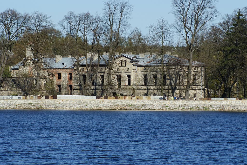 Na terenie obiektu znajdują się pozostałości zakładu metalowego, młynu wodnego oraz kamienicy. Po roku 1888 produkowano w zmodernizowanym zakładzie m.in walce młyńskie i narzędzia rolnicze. Właścicielem obiektu był w tym czasie Niemiec Neauman, który wybudował przyzakładową , piętrową kamienicę. Po jego śmierci prawa własności przejął zięć Neaumana - Mikołaj Schoenberg, od nazwiska którego zwykło się mawiać o tym obiekcie Pałac Schoenberga. Na przełomie XIX i XX wieku wnętrze pałacu zostało odnowione. Wraz z końcem II Wojny Światowej rodzina Schoenbergów opuściła miasto ze względu na swoje niemieckie pochodzenie a zakład wraz z przyległymi budynkami i terenami przejęło państwo. Dziś w rękach prywatnych czeka na powrót do świetności. Przy zabudowaniach pałacu znajduje się figura św. Jana Nepomucena, który strzegł i chronił mieszkańców przed powodzią. Figura jest polichromowana, a na niej znajduje się tabliczka z napisem: „Figura przydrożna św. Jana Nepomucena z pierwszej połowy XIX w. Patron od powodzi”.